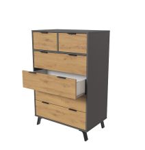 Sinfonier de 4 Cajones para Dormitorio, Acabado en Beige y Negro, Medidas: 60 cm (Largo) x 100 cm (Alto) x 34,4 cm (Fondo)
