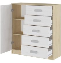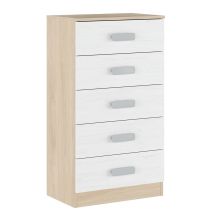 Meyvaser -Sinfonier 5 Cajones, Cómoda, Acabado en Roble y Blanco, Medidas: 60...