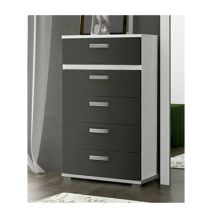 Sinfonier 5 Cajones, Cómoda, Color Blanco y Grafito, Medidas: 60 cm (Largo) x...