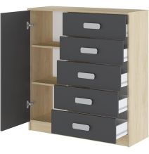 Sinfonier 5 Cajones, Cómoda, Acabado en Cambrian y Grafito, Medidas: 60 cm...