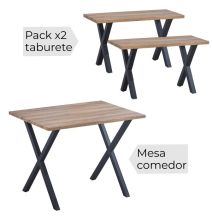 Mesa comedor + 2 taburetes: Mesa madera y Patas Metálicas En Negro (76x100x70...