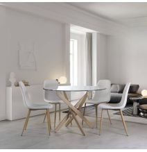 Mesa de Comedor Nórdica | Diseño con Tapa de Cristal Transparente y Patas de...