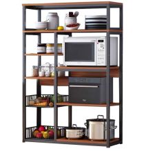 Estantería de Cocina, Estante Abierto de Pie 2 Mallas metálicas y múltiples Estantes 80x30x142cm, Color Negro y Madera