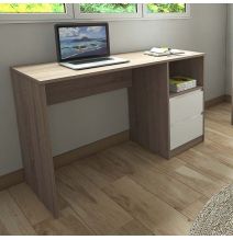 Diseño Versátil y Práctico: La mesa de estudio está diseñada con dos zonas distintas: una superficie de trabajo en la parte superior y un área de almacenaje debajo. A 10 cm del sobre, cuenta con una balda adicional de 84 cm de largo y 19,5 cm de ancho, perfecta para organizar libros, libretas y material escolar. Además, dispone de una trasera de 20 cm de altura que ofrece soporte adicional para colocar diversos utensilios según tus necesidades.