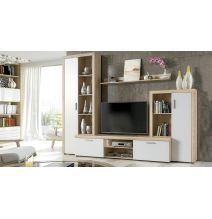 Meyvaser Mueble de salón y TV Composición de salón grande 263 Cm Cambrian-Blanco en madera de gran calidad