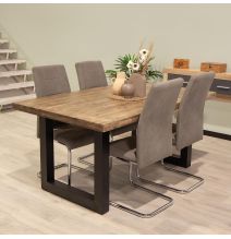 Juego de 4 Sillas con Estructura de Madera Tapizadas en Tela Teja Repelente al Agua y Patas Metálicas -Medidas 43x56x95 cm