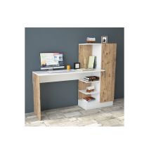 Mesa de Despacho con Estantería y 2 Cajones, Roble-Blanco, 146x60x129 cm,...