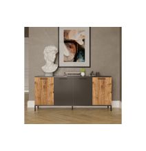 Buffet Moderno de 4 Puertas - Color Gris Oscuro-Roble - 160x40x72cm -...