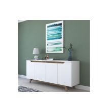Buffet con 4 Puertas y Patas de Madera Resistente - Nogal-Blanco - 180x45x78,5cm