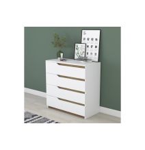 Cómoda de 4 Cajones Blanco y Nogal - 80x47x92 cm - Diseño Moderno.